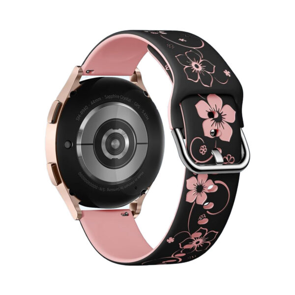 Flower Engraved Silicone Band Compatible With Samsung Galaxy Watch 7 20mm-Black