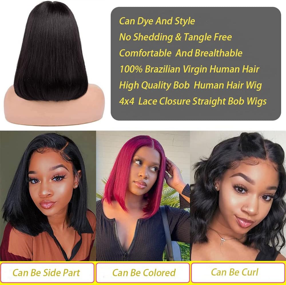 Be the first to review “4×4 Glueless Human Hair Bob Wig 10 Inch Straight Lace Closure Wig” Cancel reply