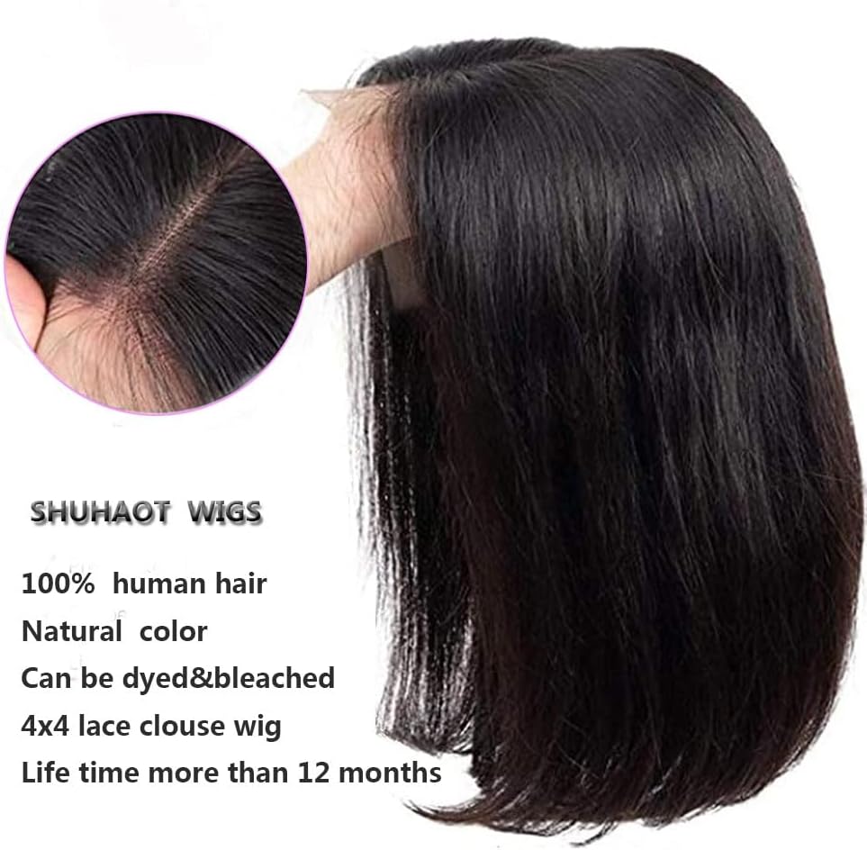4×4 Glueless Human Hair Bob Wig 10 Inch Straight Lace Closure Wig