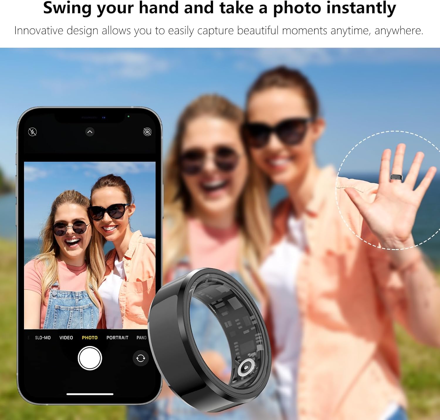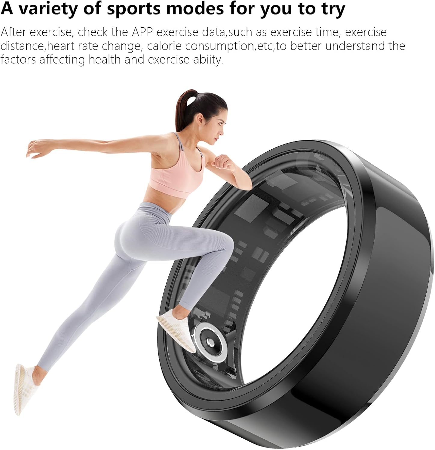 SMART RING: The smart ring health tracker can check your exercise time, distance traveled, calories burned and the quality of your sleep through the APP.It is compatible with Android 5.0 and above, and Apple IOS10.0 and above.
