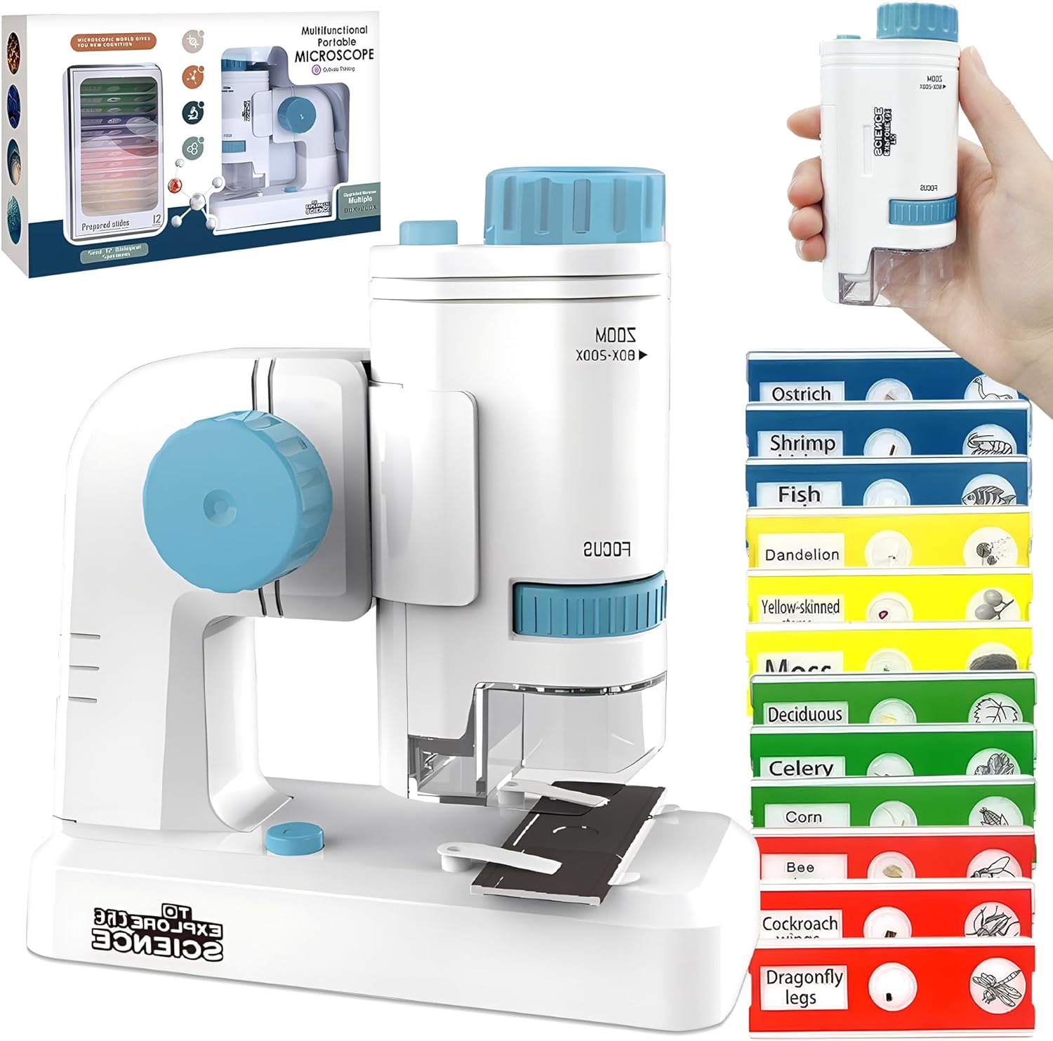 Children’s Handheld Microscope Portable Science Exploration Outdoor Observation Educational Toy (Blue)