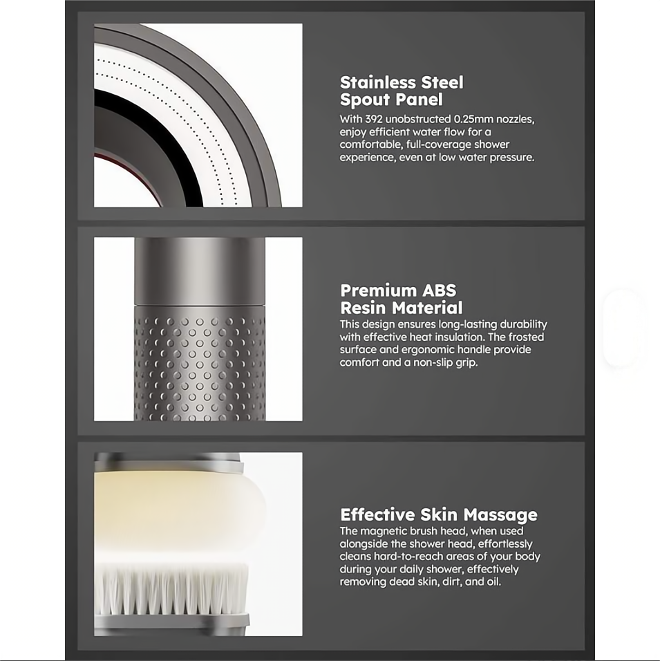 Effective Filtration: Equipped with a built-in filter, this shower head effectively removes impurities, and heavy metals from your water supply, insure a clean and healthy shower that benefits your skin and hair.