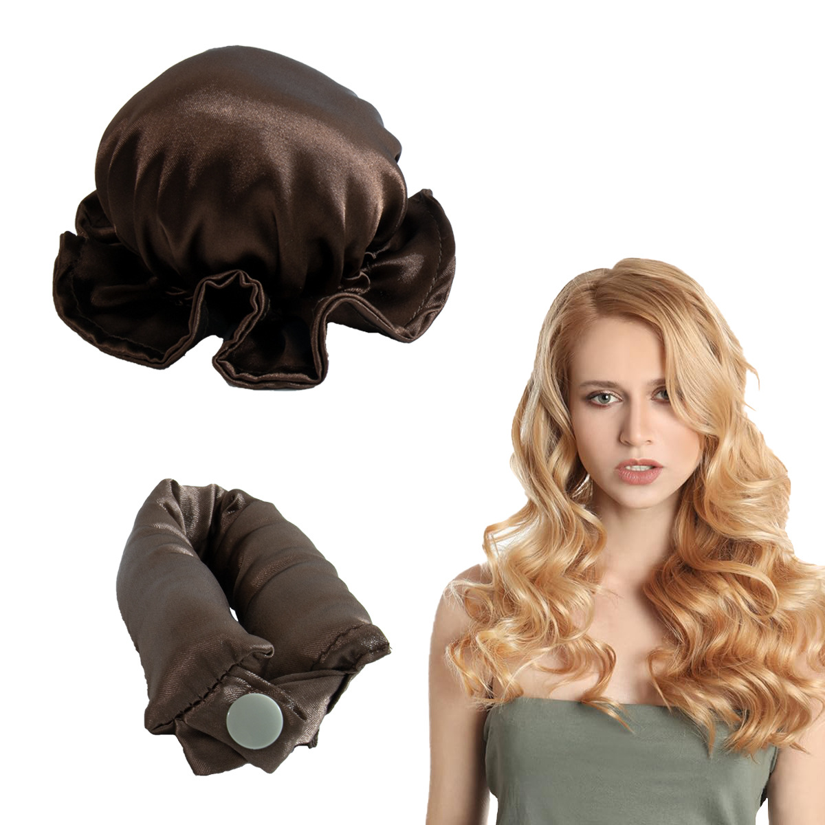 Curling Rod & Cap Satin Heatless Hair Rollers Set-Brown