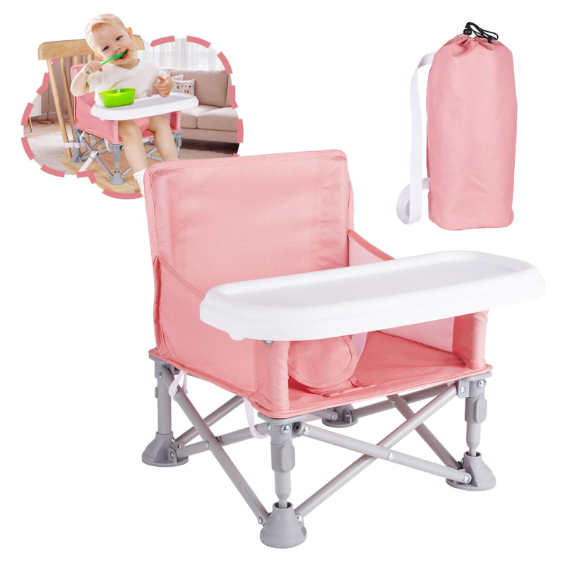 Foldable Baby Dining Chair Seat With Tray And Travel Bag- Pink