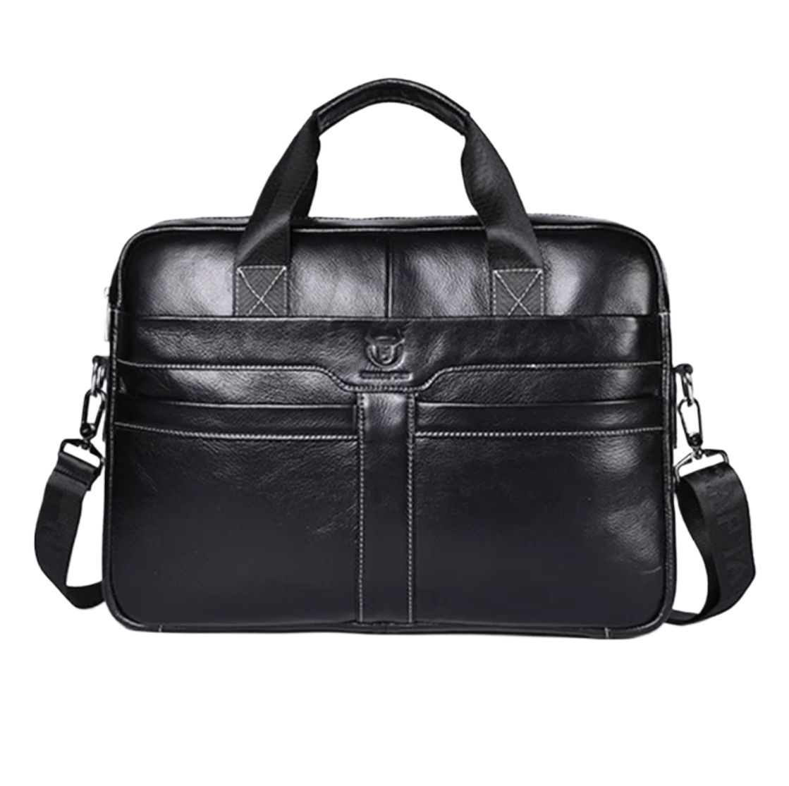 Genuine Leather Men’s Briefcase High Quality Business Classic Handbag Holds 14.7 Inch Laptop Bag Black