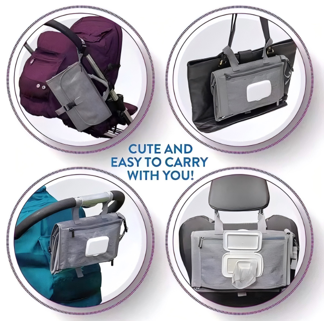 All-in-One Design – Changing mat + storage pouch for diapers, wipes & essentials.