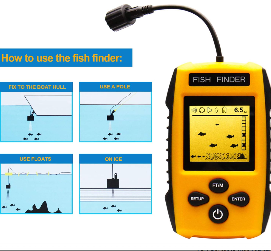 Versatile Use: Detects water depth, fish location and size (small/medium/large), weeds, sand, and rocks. Ideal for kayak fishing, dock fishing, and ice fishing in both freshwater and saltwater.