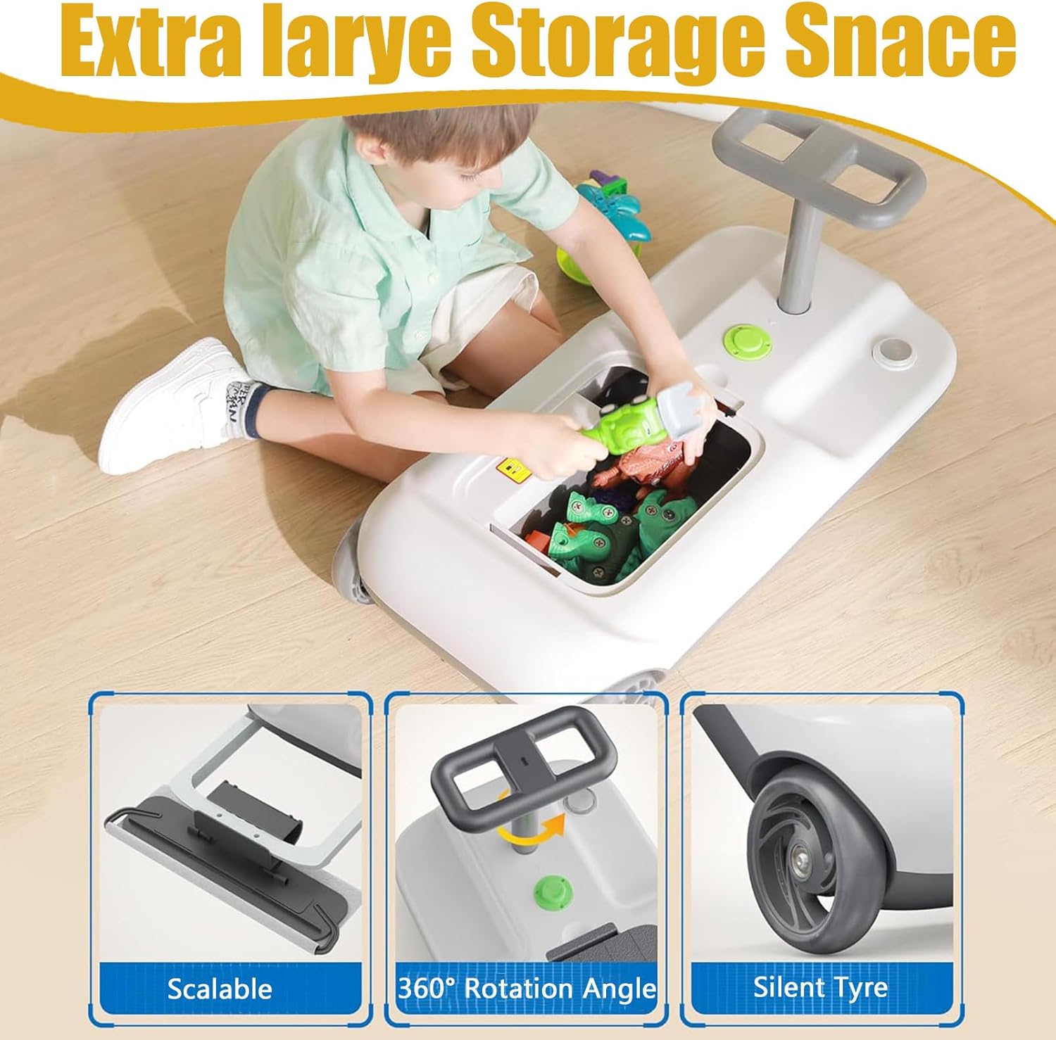 Built-in Storage Box: Hidden compartment helps kids carry toys or cleaning tools, encouraging neat habits and independent organization.