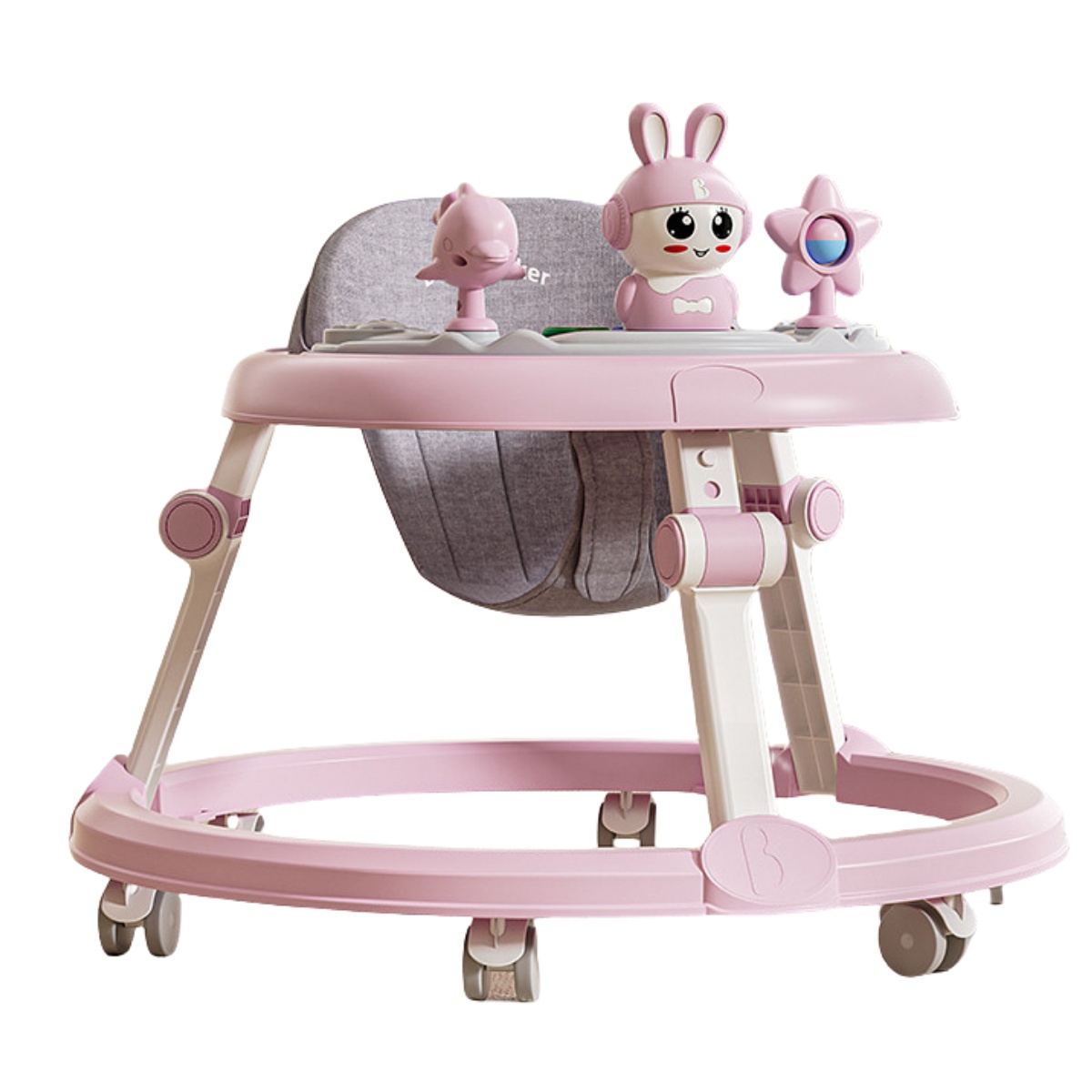 Pink Foldable Walker For 6-18 Months Old Baby With Music