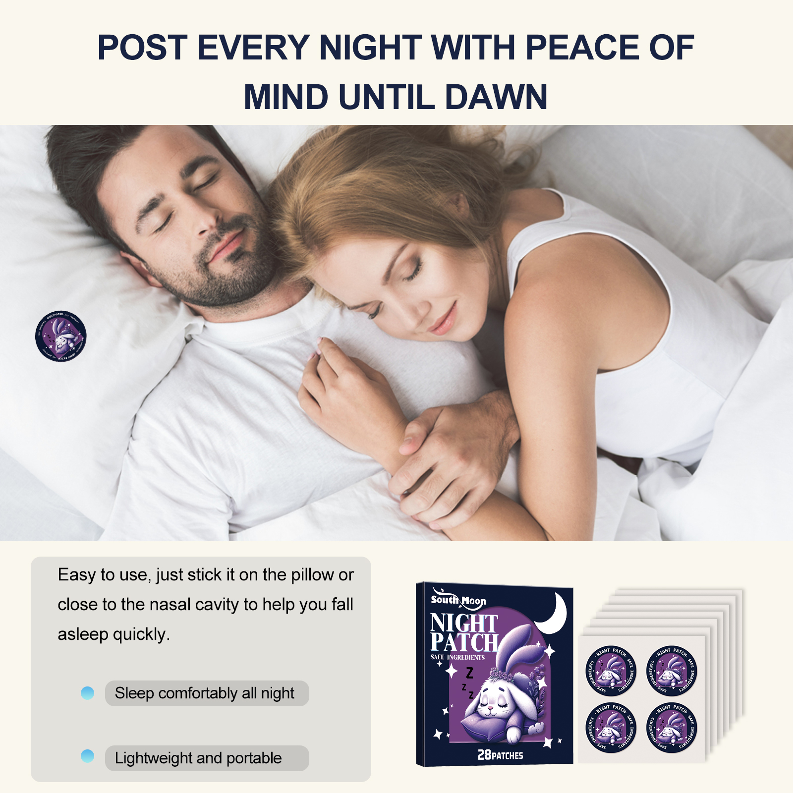 Gentle sleep aid at night: patch slow-release fragrance technology, continuously releases soothing ingredients during sleep, creating a safe rest environment, helping you sleep through the night.