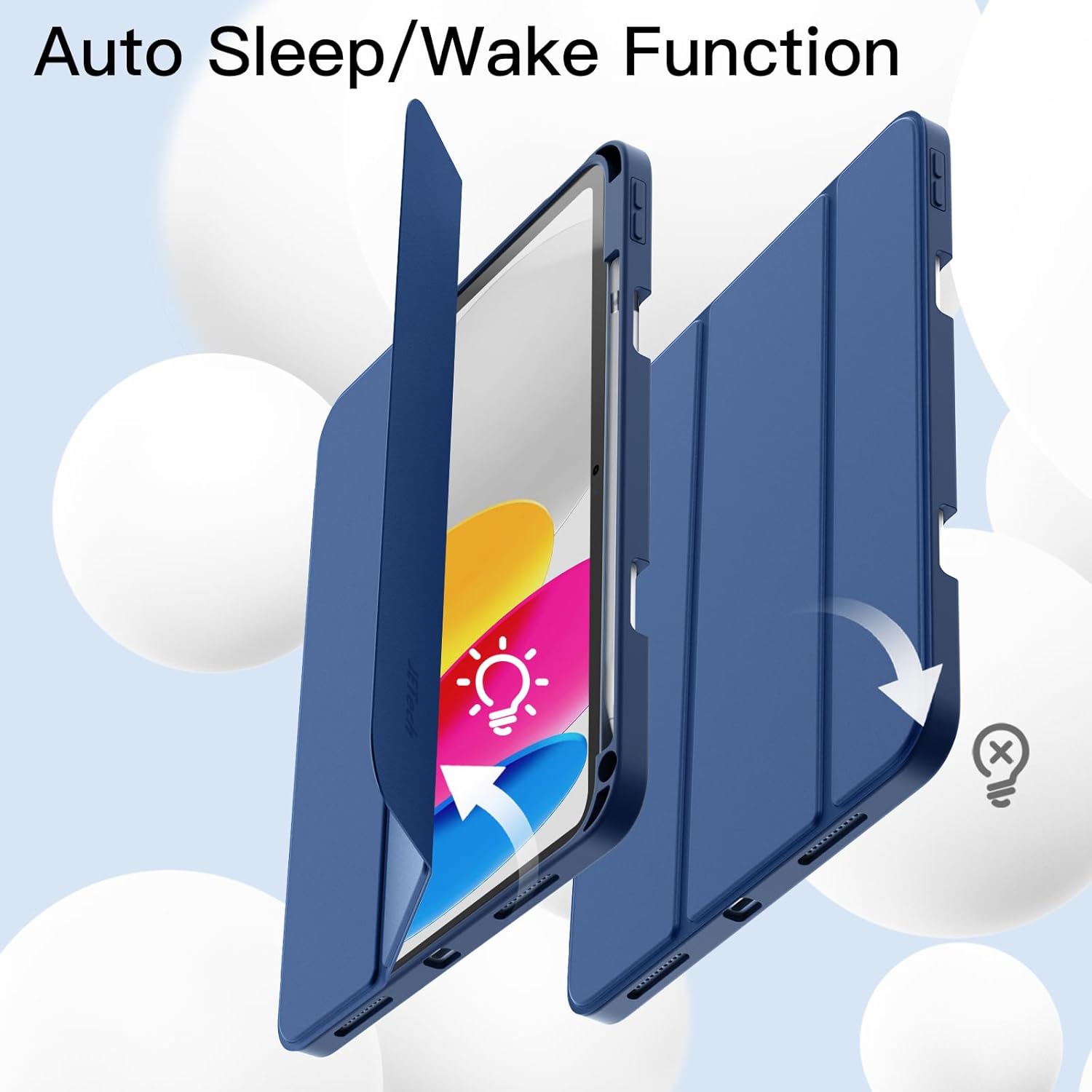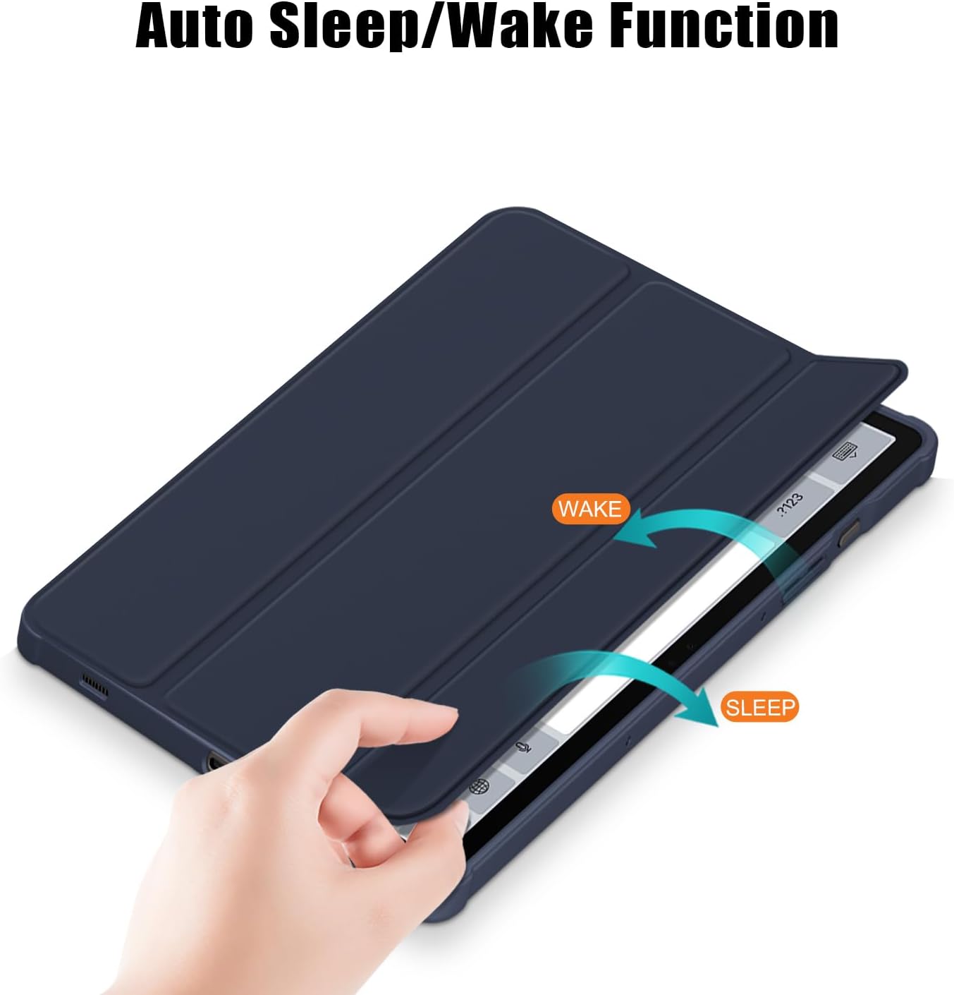 The tri-fold magnetic front cover supports automatic sleep and wake-up, effectively extending battery life.