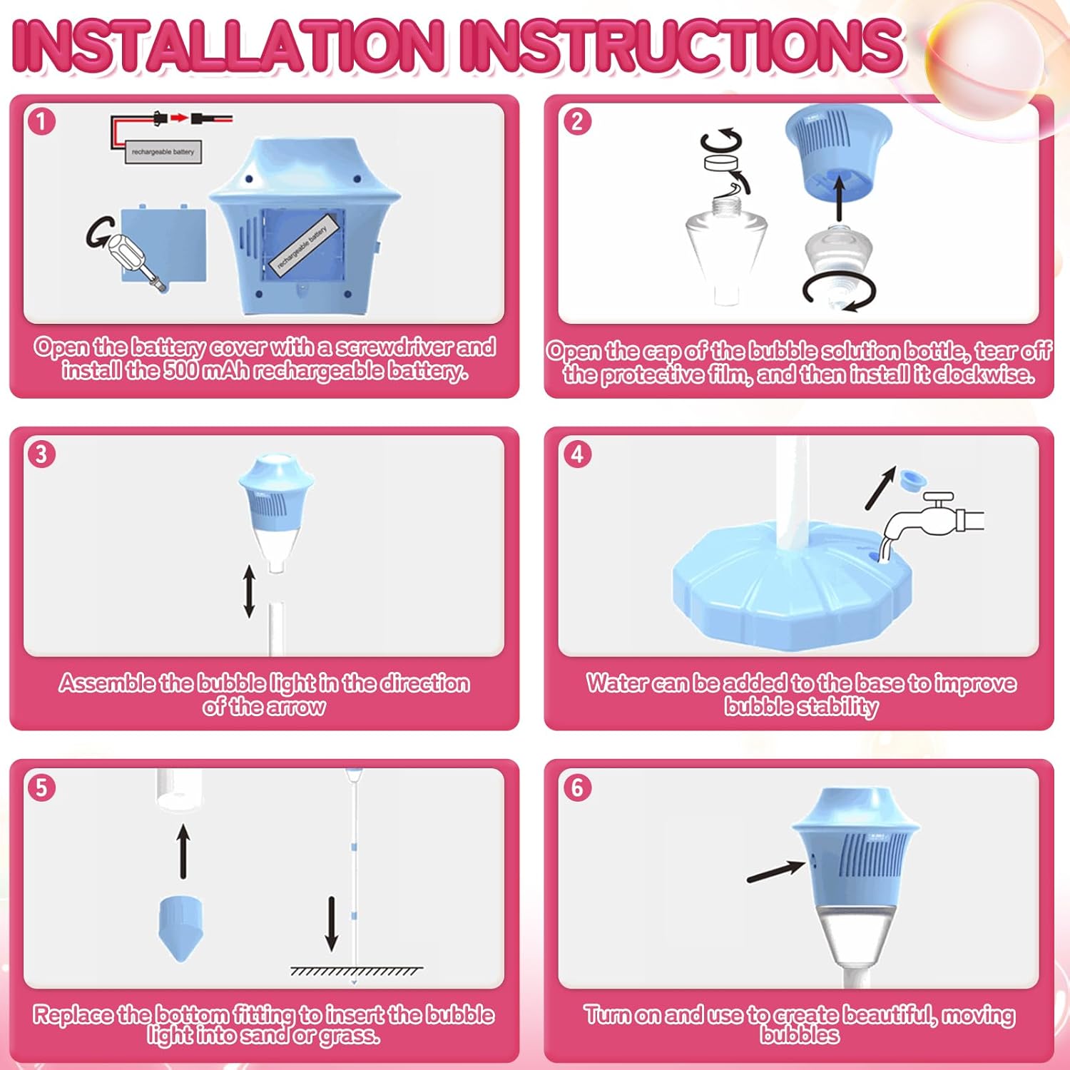 Adjustable Height: The column design allows you to adjust the bubble height to suit your child.