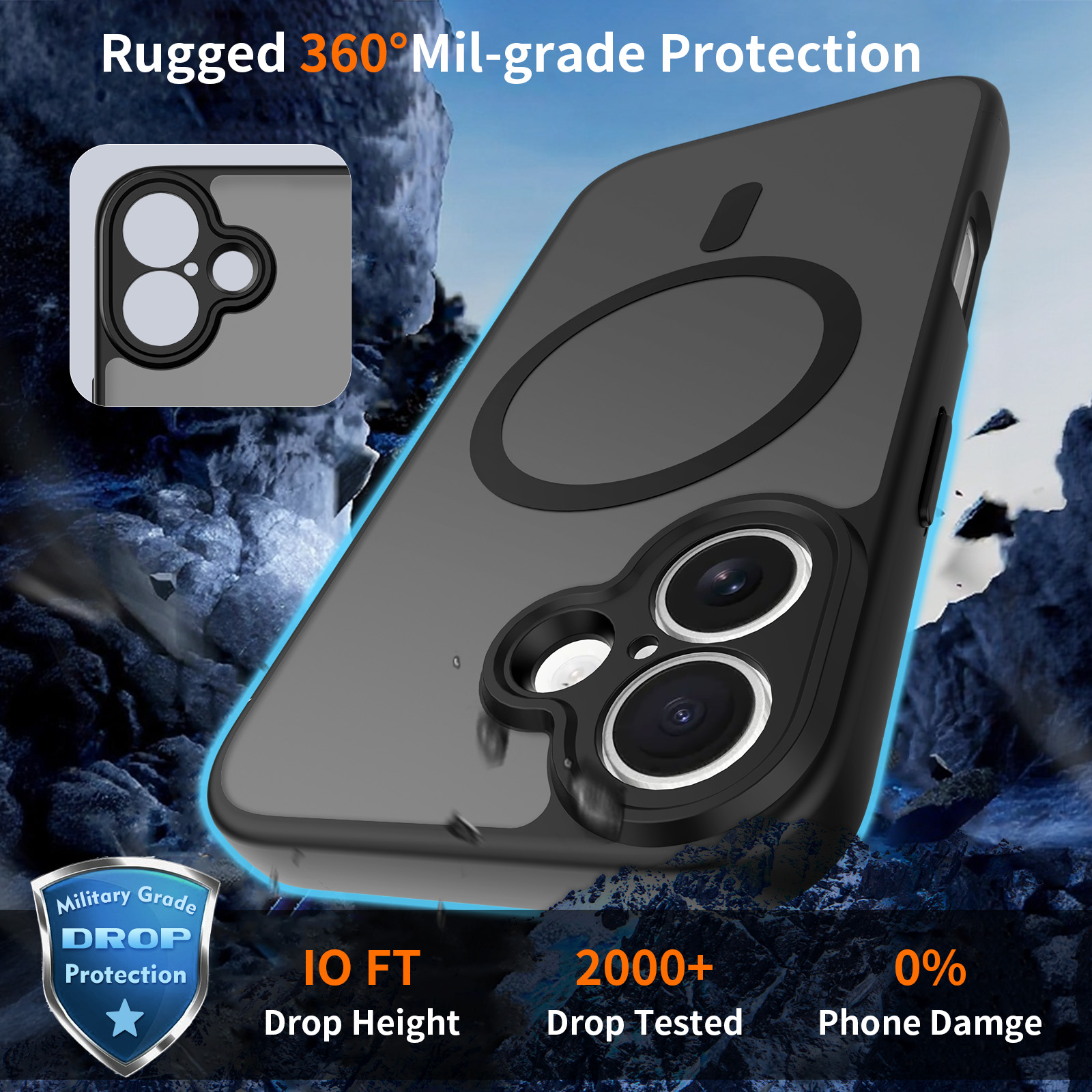 Magnetic Function:Built-in Magnetic Ring (compatible with MagSafe & magnetic car holders)
