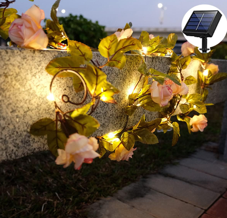 Solar Roses String Lights LED Artificial Flower Garlands Light With 8 Modes IP45 Waterproof Solar Powered Fairy String Lights Floral Garland