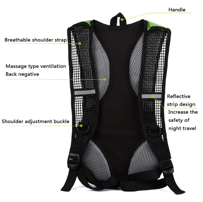 LARGE VOLUME: In-built 2-litre hydration bladder, wide enough to insert standard ice-cubes, equipped with 35 Inch quick-release, soft mouth-piece drinking tube. It also provides ample room for your outdoor essentials including additional clothing, sports towel, phone key and etc.