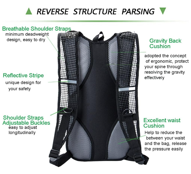 LARGE VOLUME: In-built 2-litre hydration bladder, wide enough to insert standard ice-cubes, equipped with 35 Inch quick-release, soft mouth-piece drinking tube. It also provides ample room for your outdoor essentials including additional clothing, sports towel, phone key and etc.